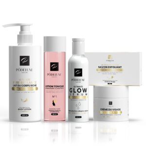 Notre kit de soins ULTIMATE PURE BRILLANCE est un ensemble de soins ultra éclaircissants formulés pour éclaircir nourrir et hydrater la peau . Destinés à celles qui veulent avoir un teint très clair et sans imperfections, Ces soins ne sont pas à action rapide et ne blanchissent pas en quelques jours